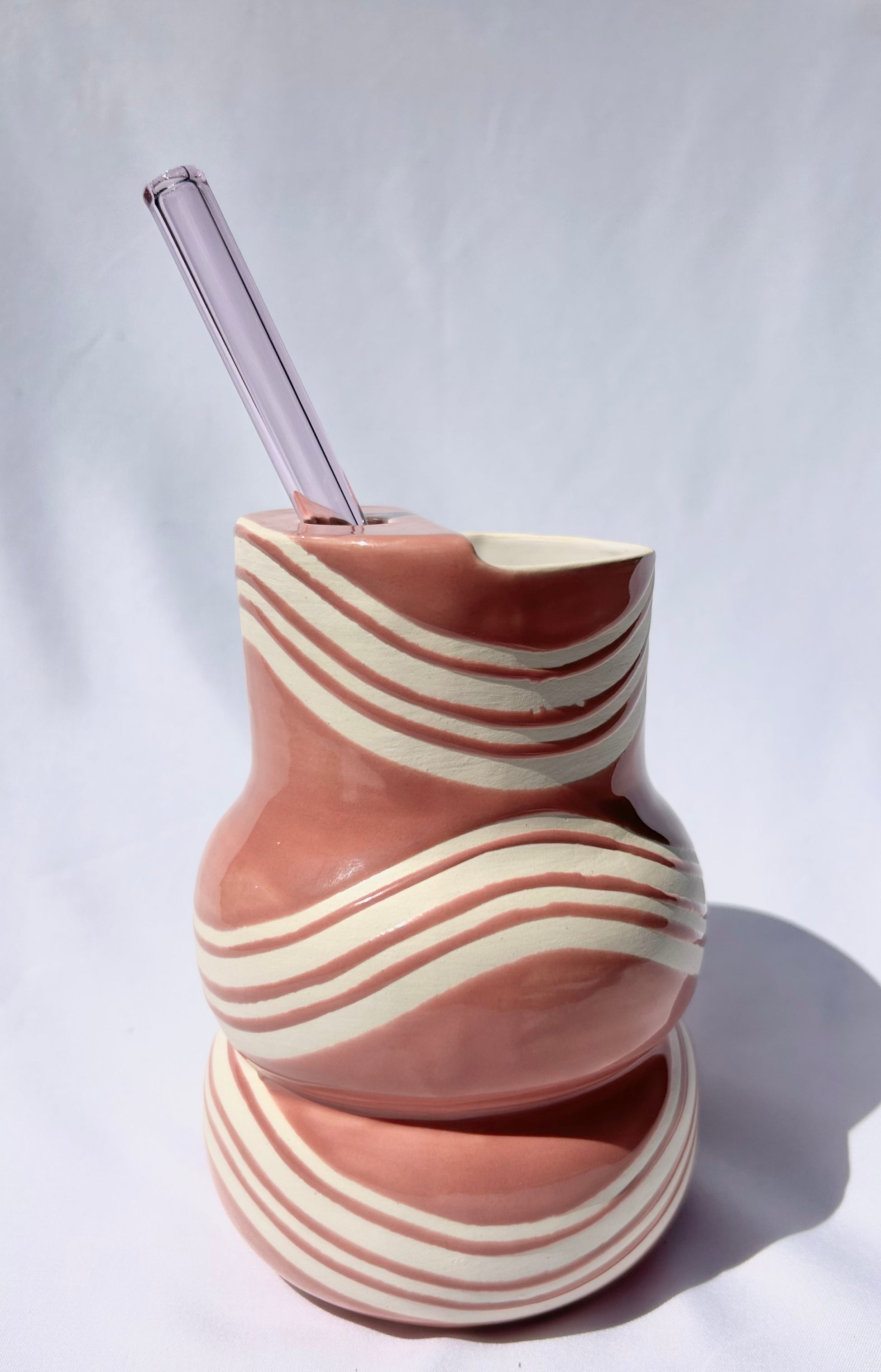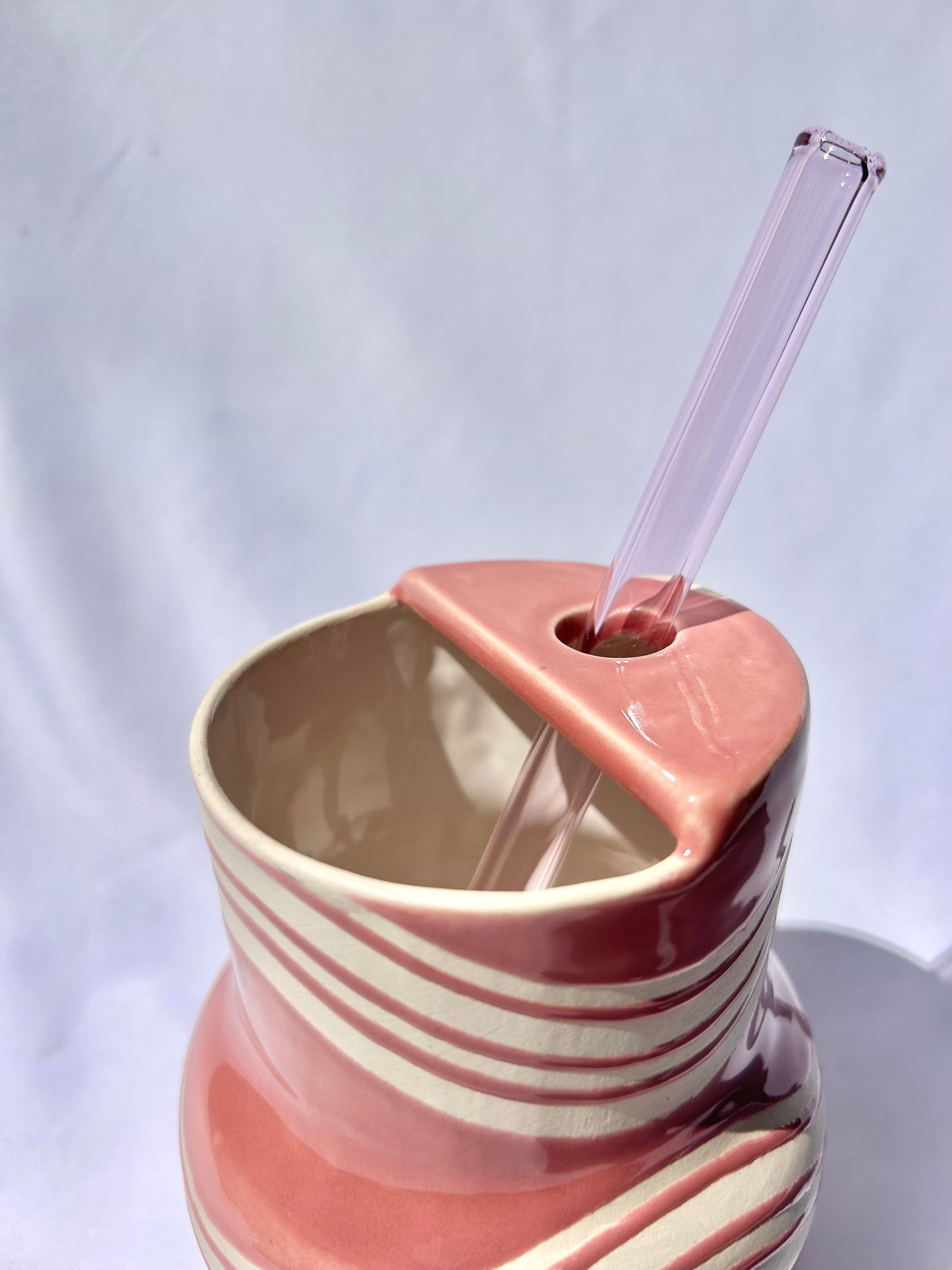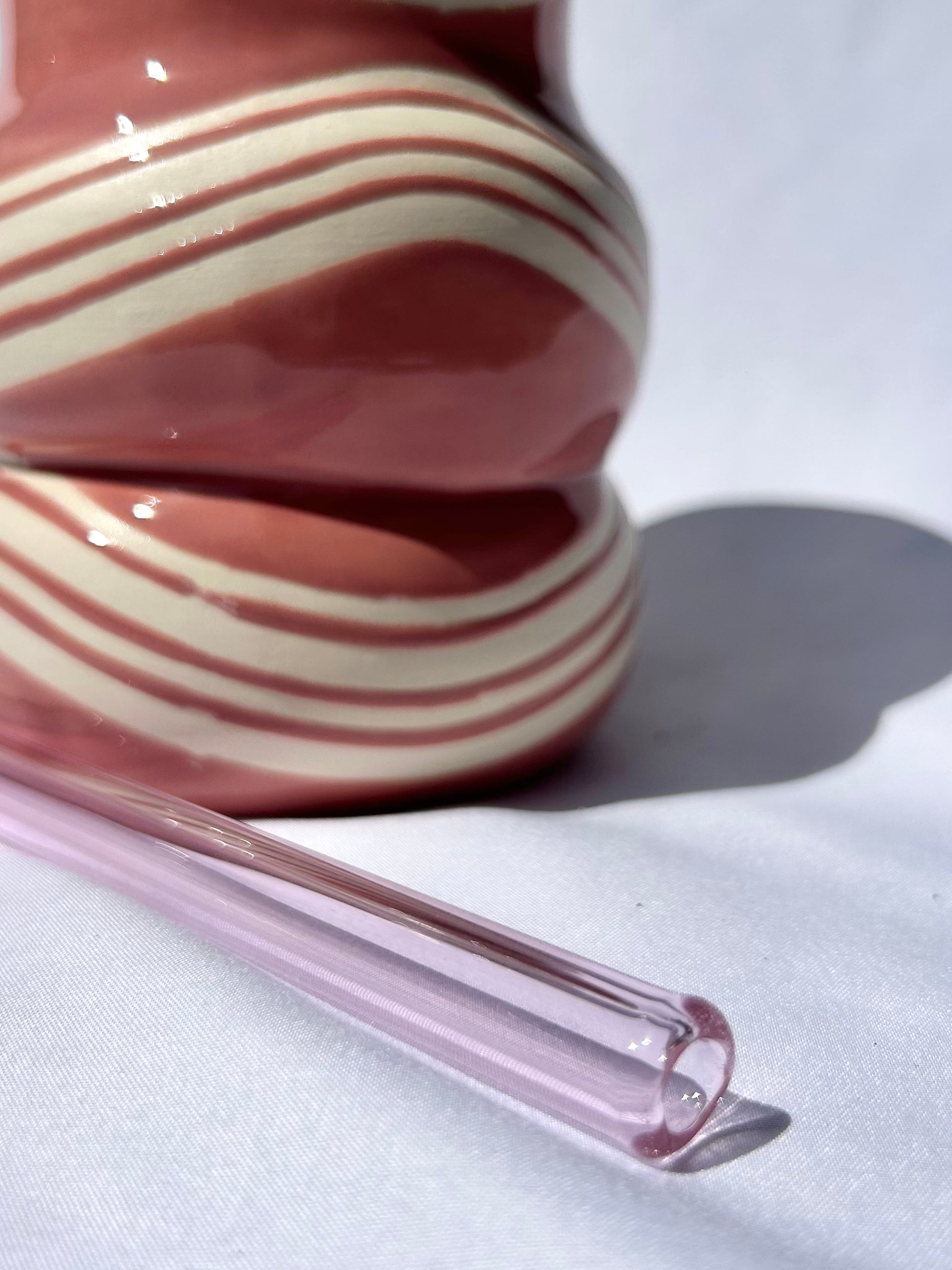 This 25oz Bubble Tumblers is the perfect everyday cup to add to your kitchen cabinet. This piece comes with a matching hand blown straw.
