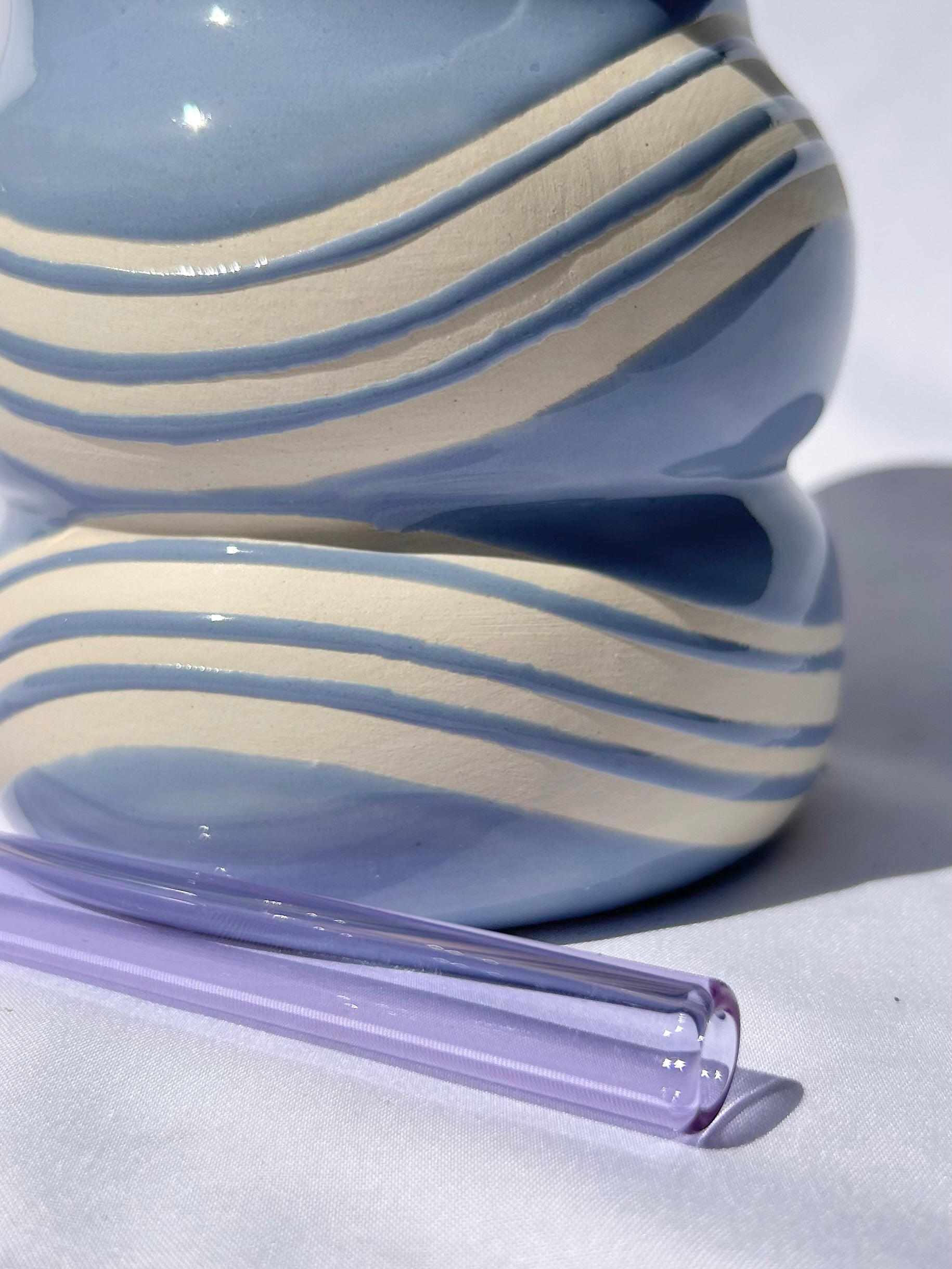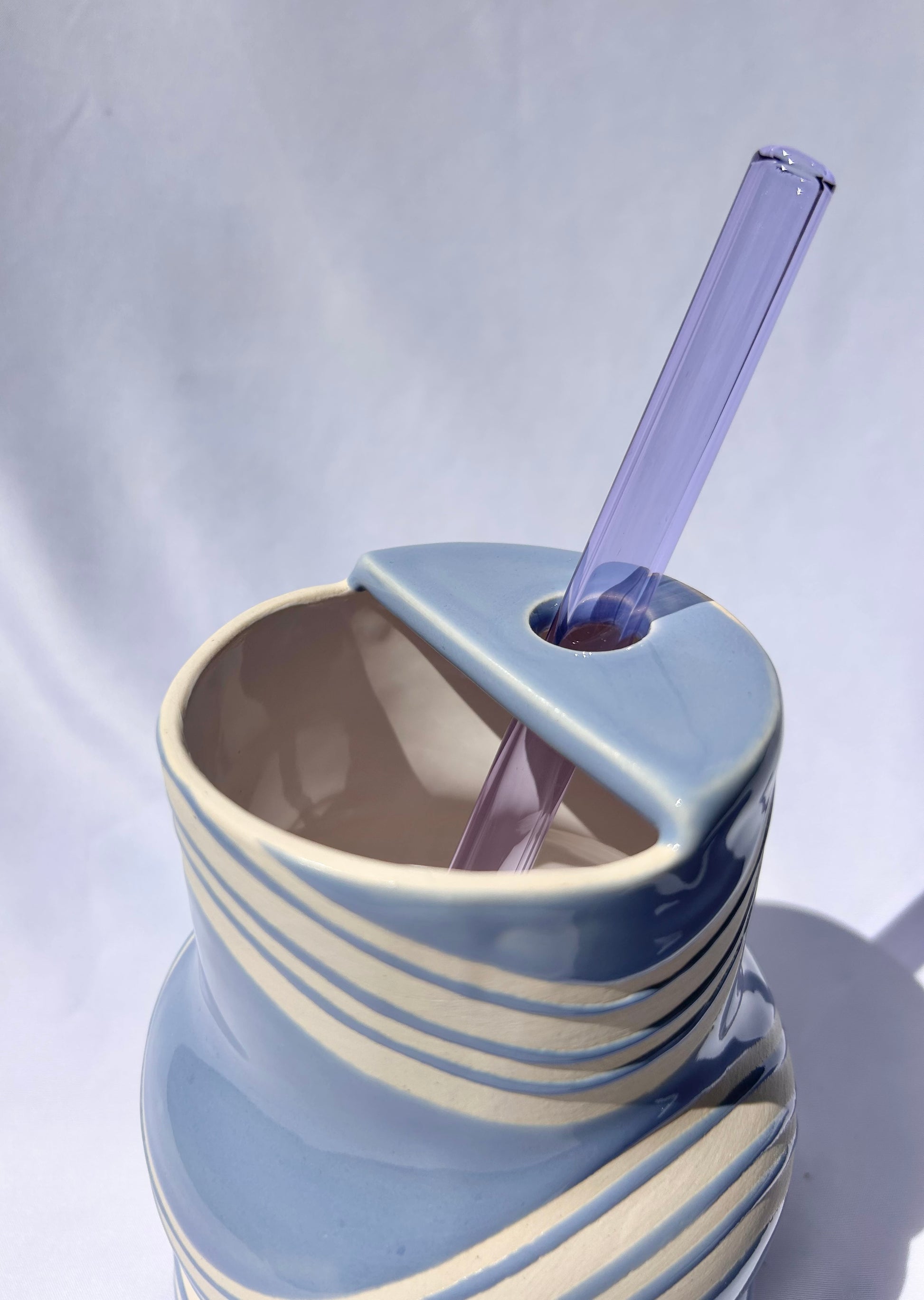 This 25oz Bubble Tumblers is the perfect everyday cup to add to your kitchen cabinet. This piece comes with a matching hand blown straw.