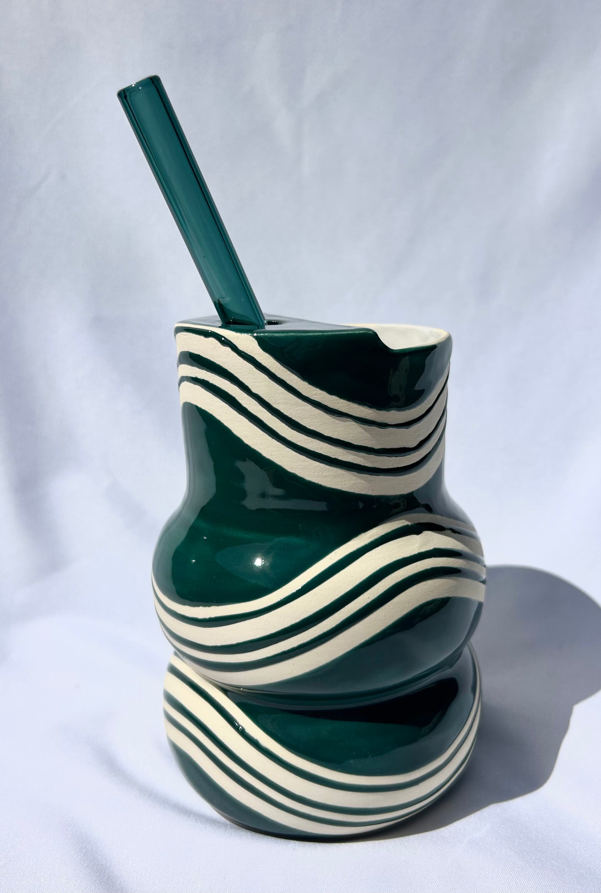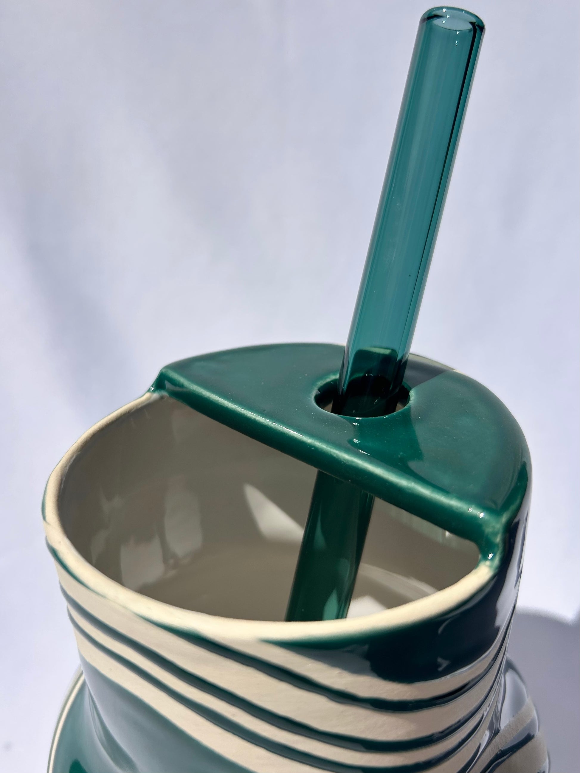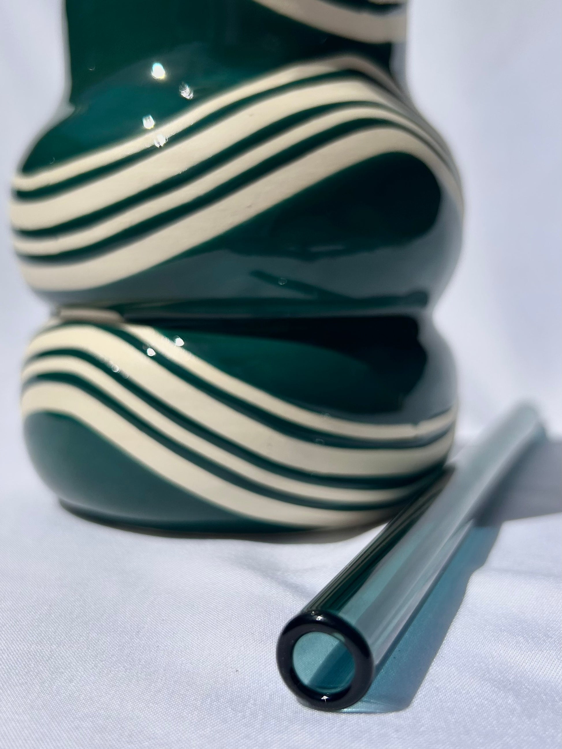 This 25oz Bubble Tumbler is the perfect everyday cup to add to your kitchen cabinet. This piece comes with a matching hand blown straw.